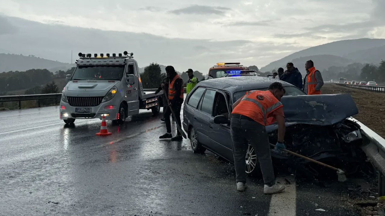 Düzce’de Anadolu Otoyolu’nun Gümüşova ilçesi Yongalık köyü mevkiinde H.İ.T. yönetimindeki otomobil, aynı yöne seyreden Z.Ö. idaresindeki otomobile arkadan çarptı.