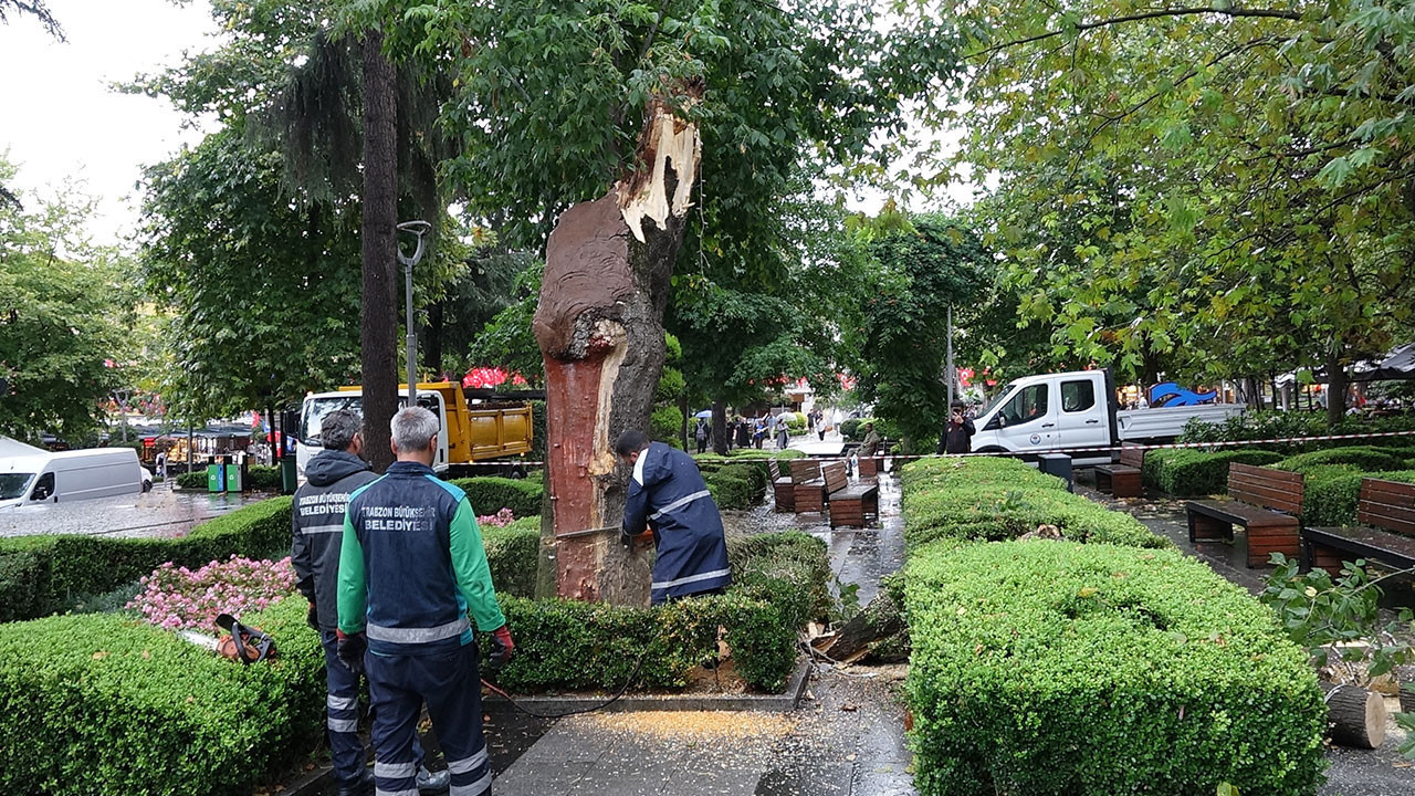 Trabzon’da etkili olan kuvvetli rüzgar nedeniyle Meydan Parkı’ndaki bankların üzerine ağaç devrildi. Ekipler, ağacı kesip kaldırırken, parktaki bankların kırıldığı tespit edildi.
